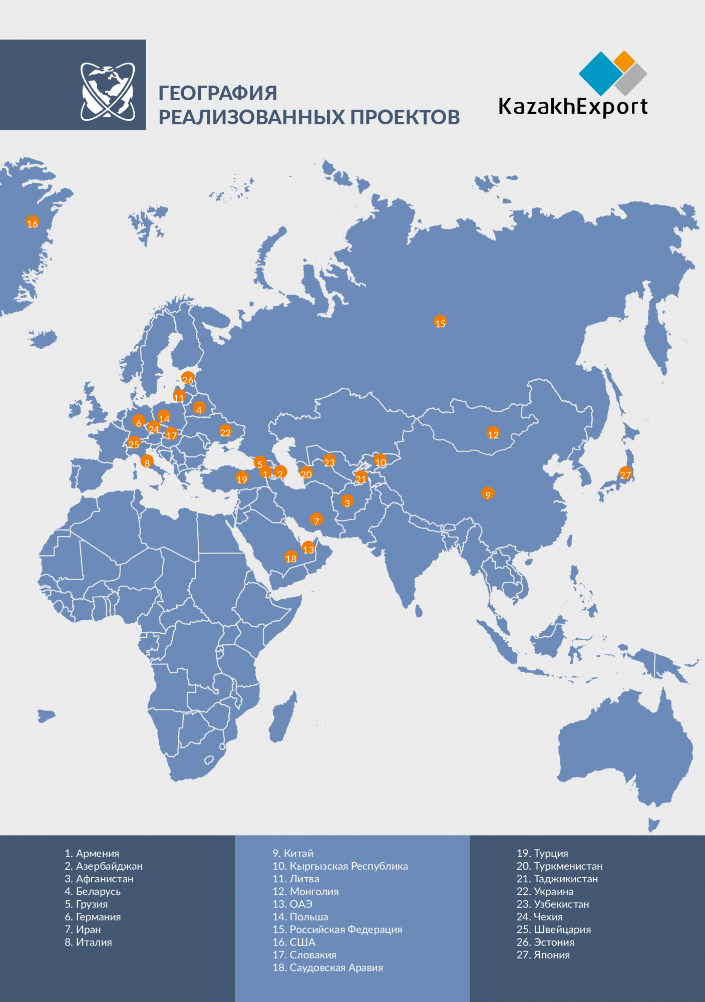 Geography of implemented projects | Company News | Export credit agency of Kazakhstan