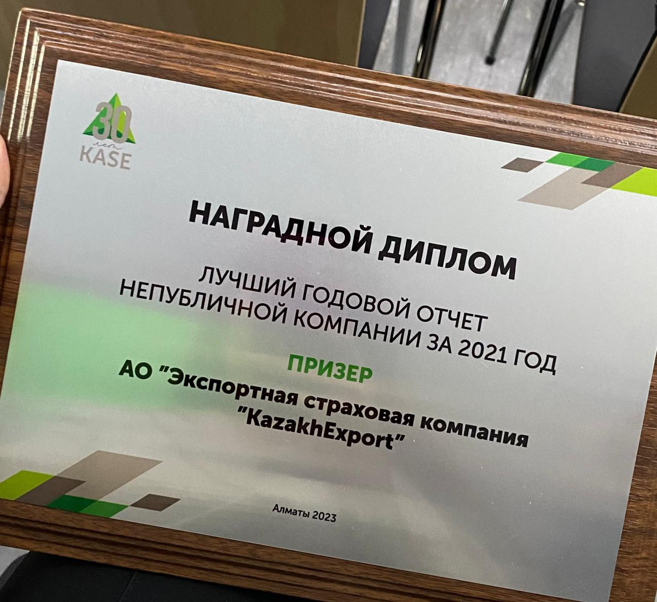 In the nomination "Best Annual Report of a Non-Public Company for 2021" diplomas were awarded to Export Insurance Company "KazakhExport" JSC.