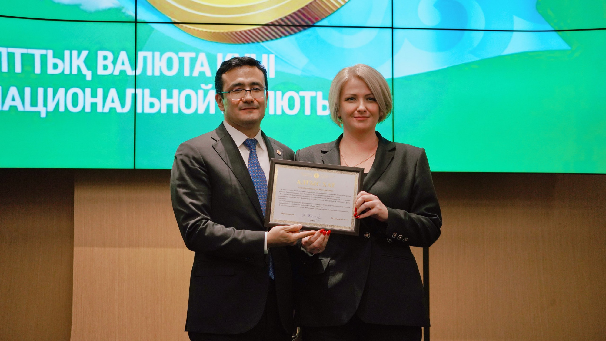 Elmira Khismatullina was presented with a Letter of Gratitude from the Deputy Prime Minister and Minister of National Economy, Nurlan Baibazarov.