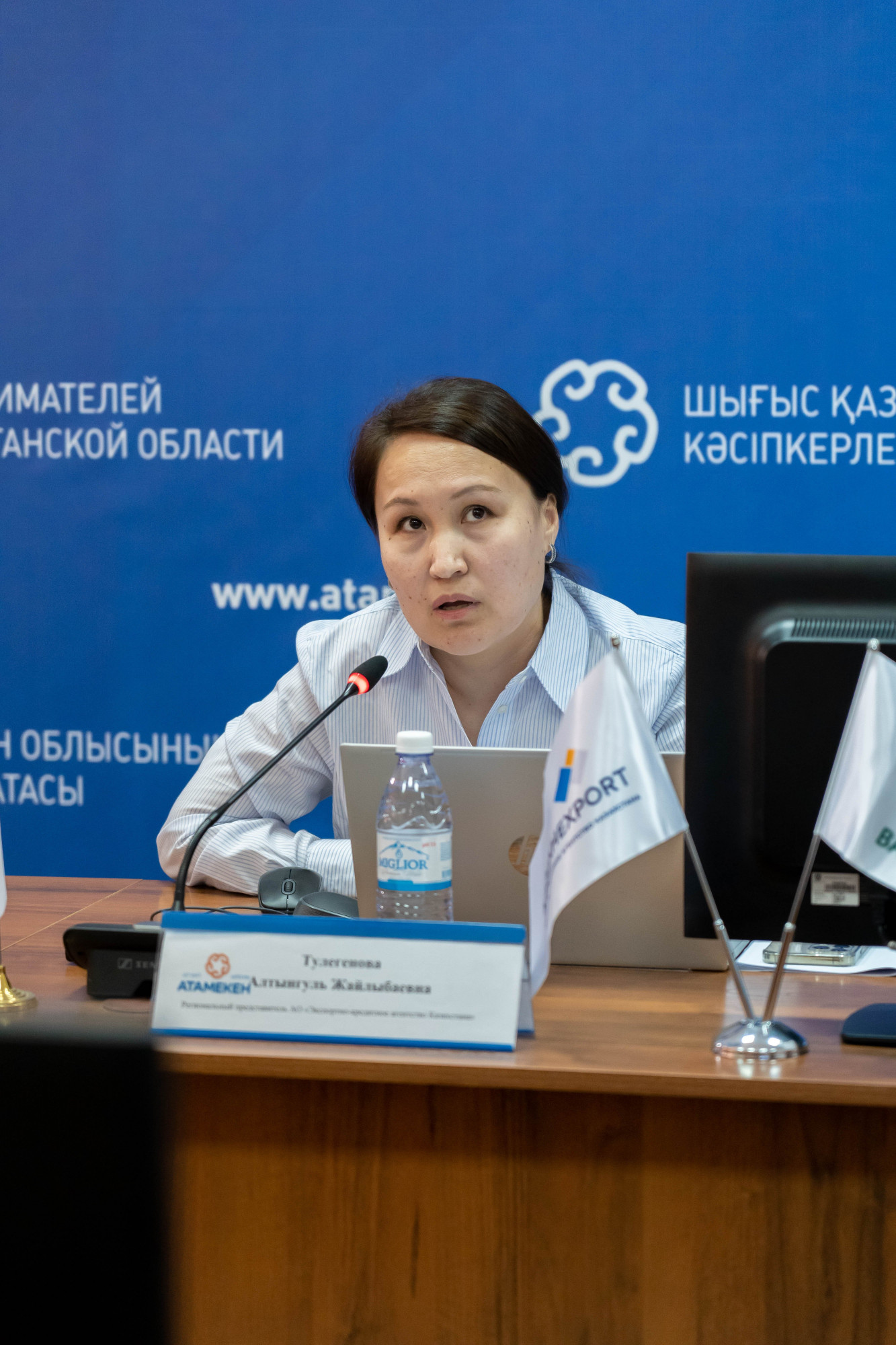 One of the main topics discussed was the pre-export financing tool, offering attractive lending terms at an annual rate not exceeding 12.6%. This mechanism is available both through commercial banks and the Development Bank of Kazakhstan. According to the Regional Manager, it is the most popular financial product, enabling businesses to secure working capital for purchasing raw materials and preparing export batches.