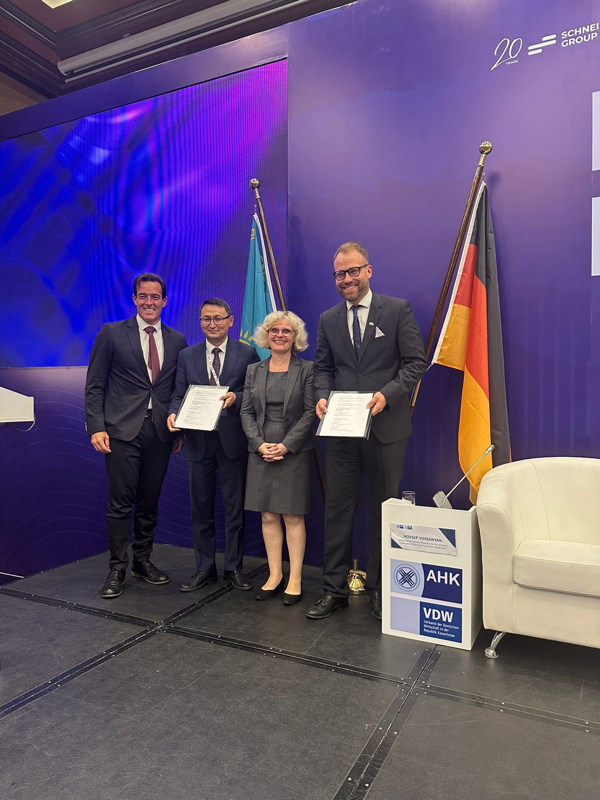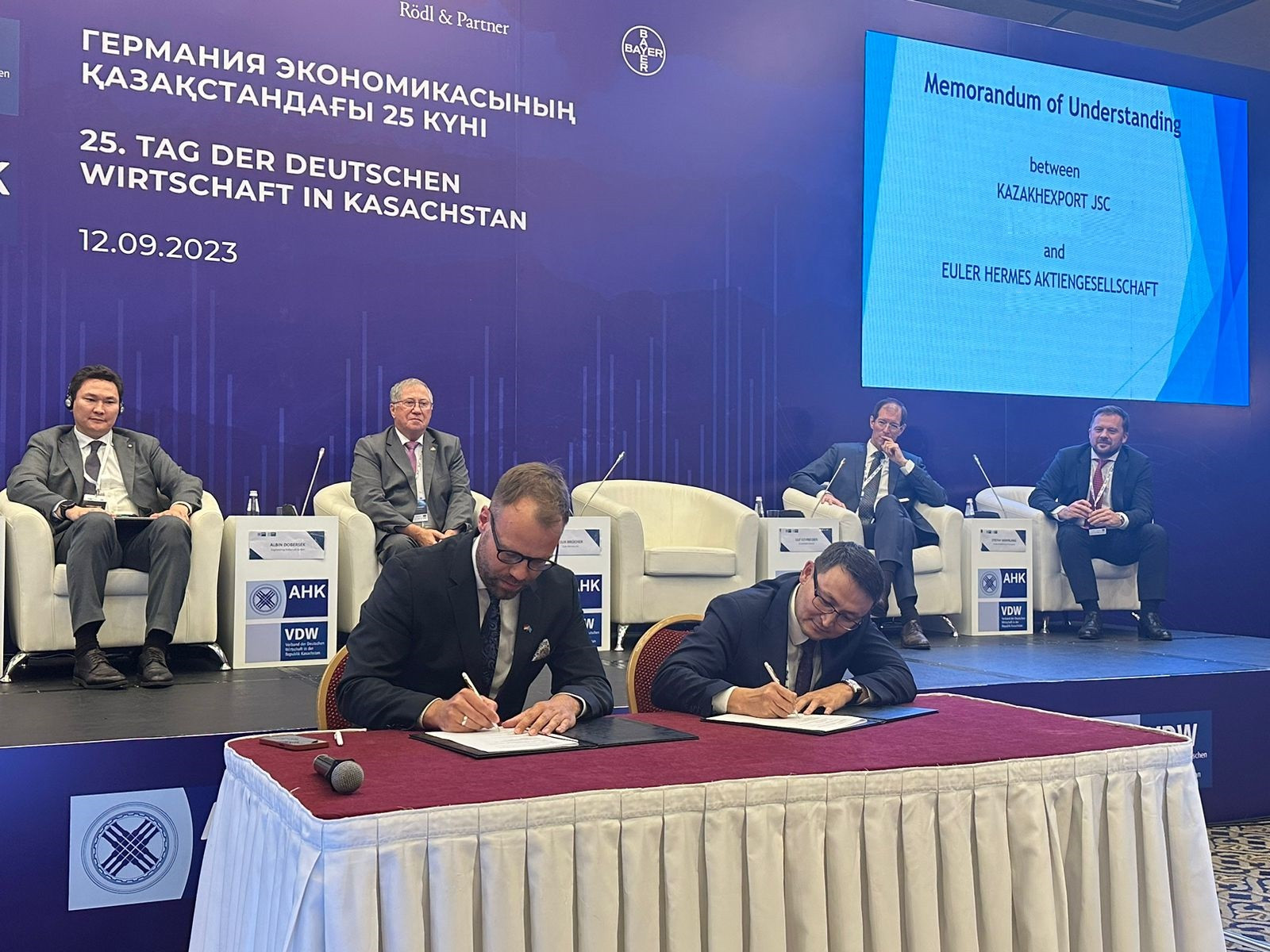 “We are glad to strengthen cooperation with our partners from Germany. The signed Memorandum will promote expanding business contacts, which will benefit both the Kazakh and German economies. We also see great potential in creating advanced export-oriented production in Kazakhstan thanks to the import of technology and competencies from Germany using the Euler Hermes’s best practices,” said Kuanysh Mukazhanov the Deputy Chairman of the Management Board of the KazakhExport.