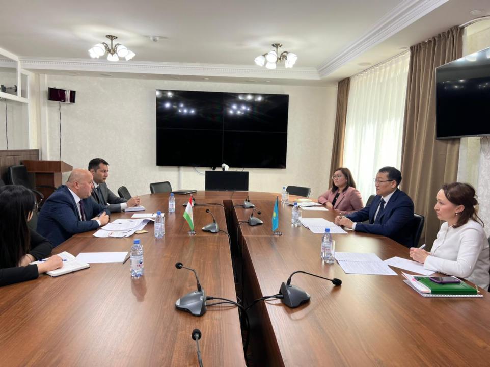 On April 12, 2022, Vice Minister of Trade and Integration of the Republic of Kazakhstan Kairat Torebayev met with the Ambassador of Tajikistan to the Republic of Kazakhstan Khairulla Ibodzoda.