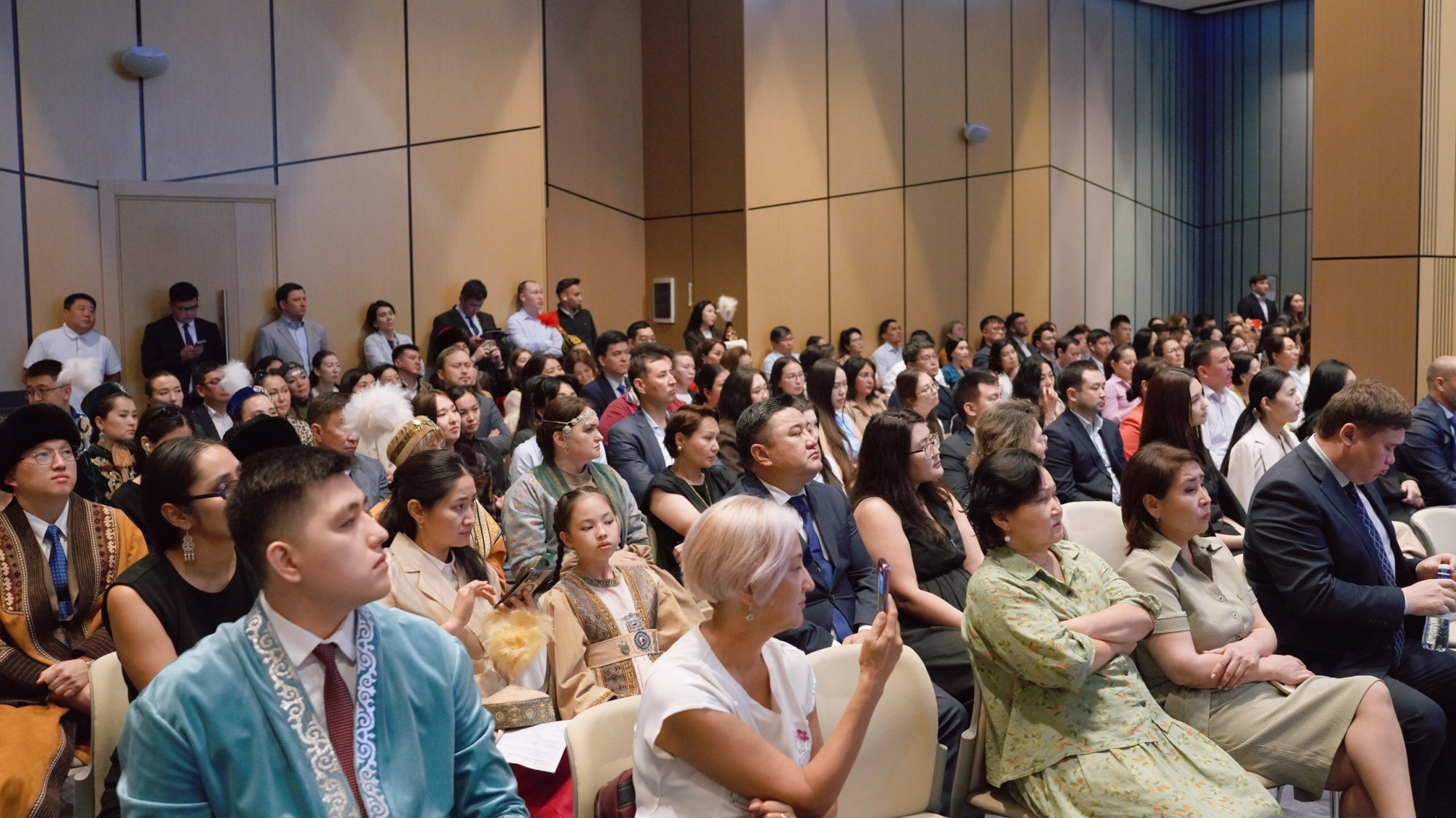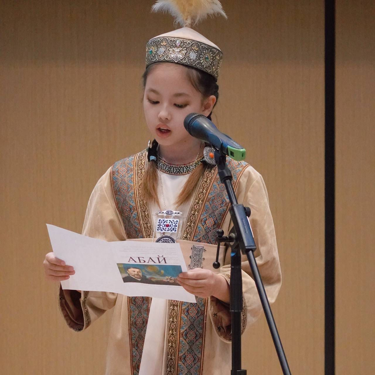 Жиын соңында Қазақстанның экспорттық-кредиттік агенттігі қызметкері Сәния Құрманованың 3-ші сыныпта оқитын қызы Айсана Әбдікәрім Абай қара сөздерін оқып, ақын рухына тағзым етті.