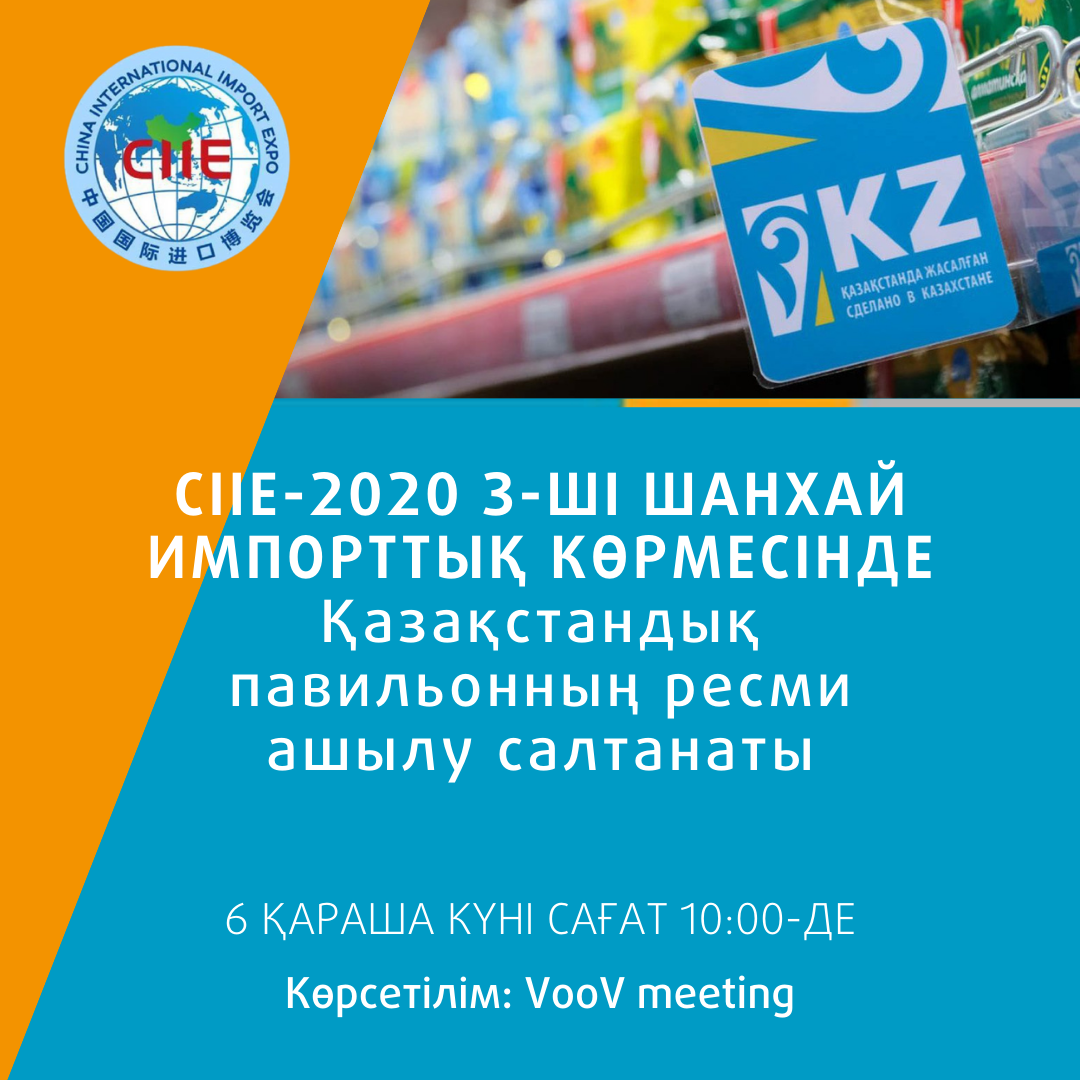 Ертең 06.11.2020 Ж.3-ші Шанхай импорттық Ciie-2020 көрмесінде қазақстандық павильонның ресми ашылу салтанаты өтеді.