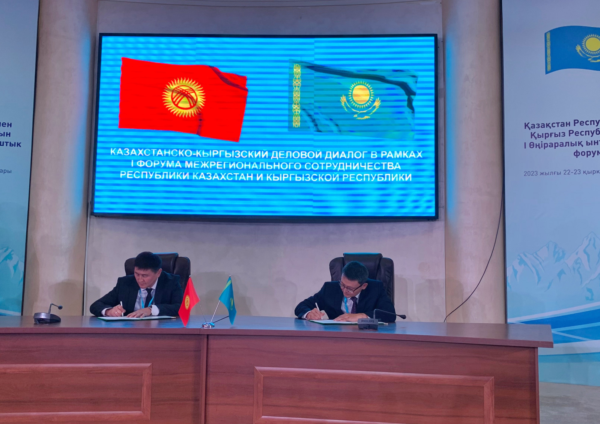 Қол қою рәсімі қазақ-қырғыз үкіметаралық кеңесі мен Қазақстан мен Қырғызстанның I өңіраралық ынтымақтастық форумының алаңында өтті.
