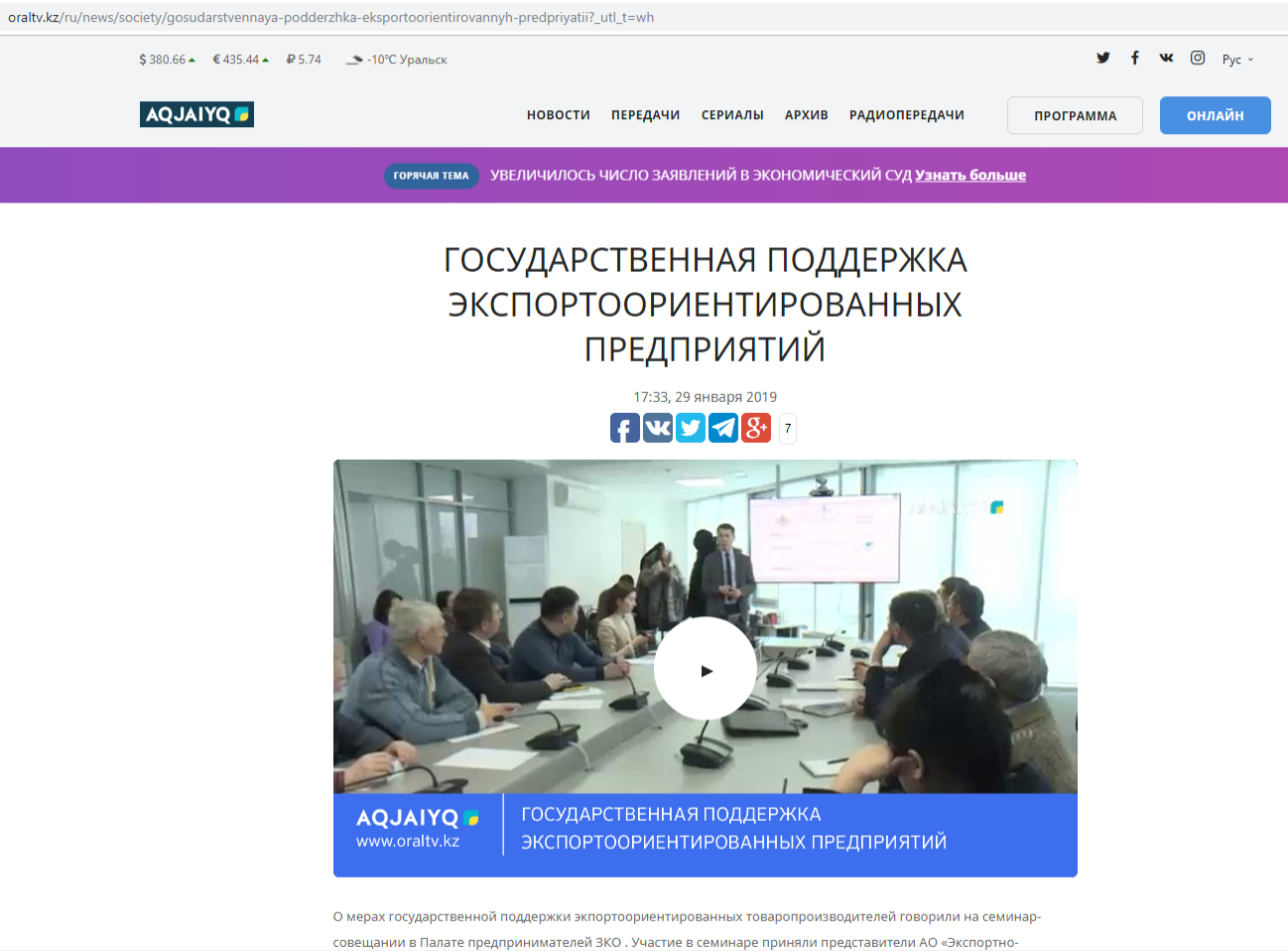 Более подробно смотрите на сайте телеканала «Aqjaıyq» по ссылке: http://oraltv.kz/ru/news/society/gosudarstvennaya-podderzhka-eksportoorientirovannyh-predpriyatii?_utl_t=wh