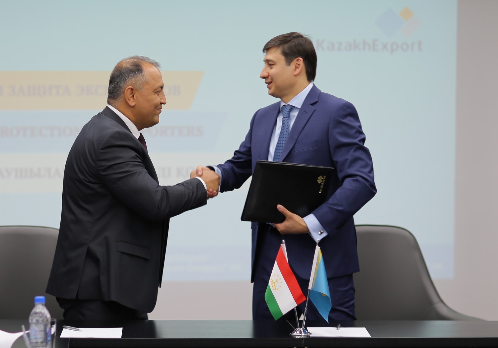 В распространенном сообщении говорится, что KazakhExport подписал соглашения о сотрудничестве в сфере страхования и финансирования казахстанских производителей, осуществляющих экспорт из Казахстана в Таджикистан, с АО «Ориенбанк», ЗАО «Банк Эсхата, ЗАО «Международный Банк Таджикистан».