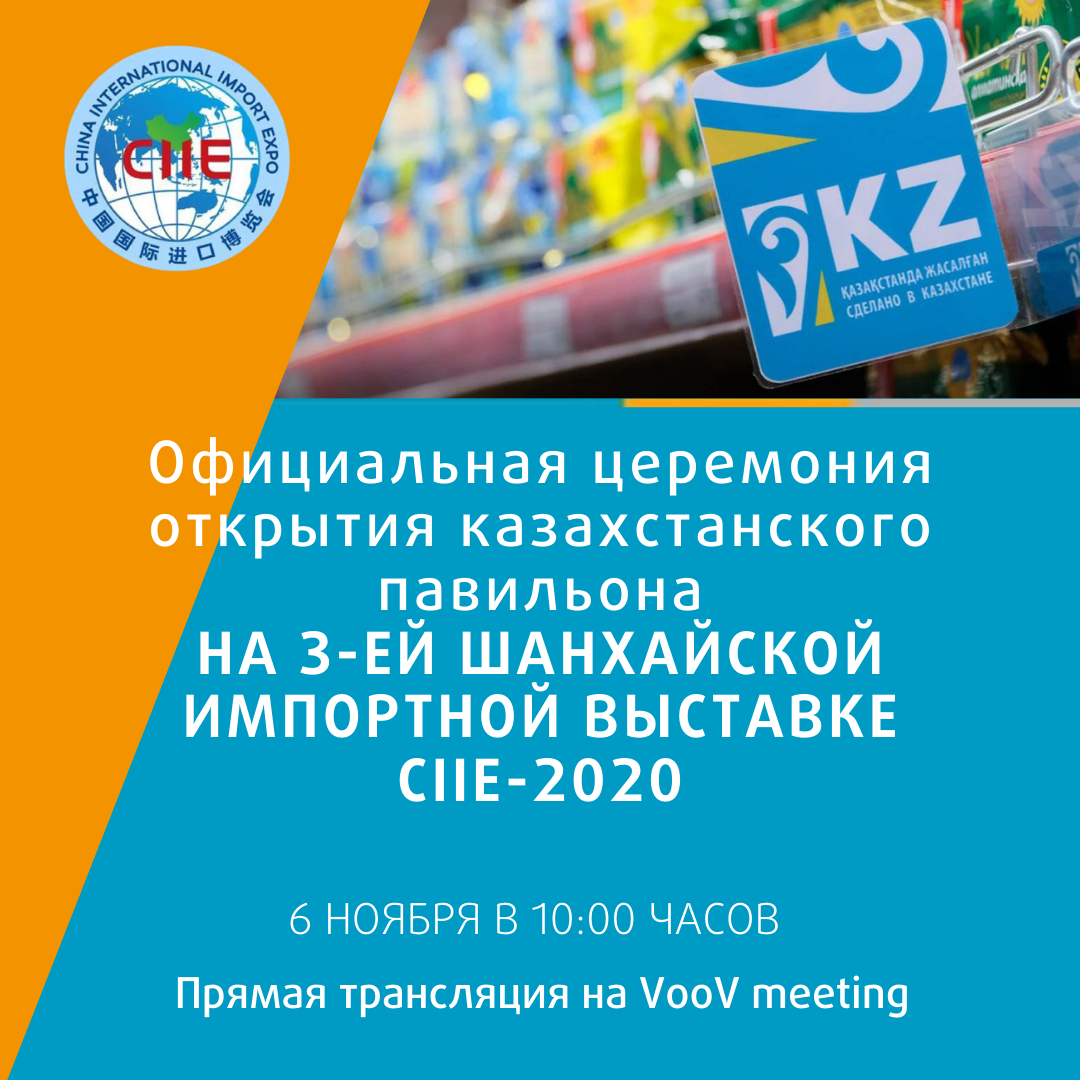 Завтра 06.11.2020 г. состоится официальная церемония открытия Казахстанского павильона на 3-ей Шанхайской Импортной Выставке CIIE-2020.