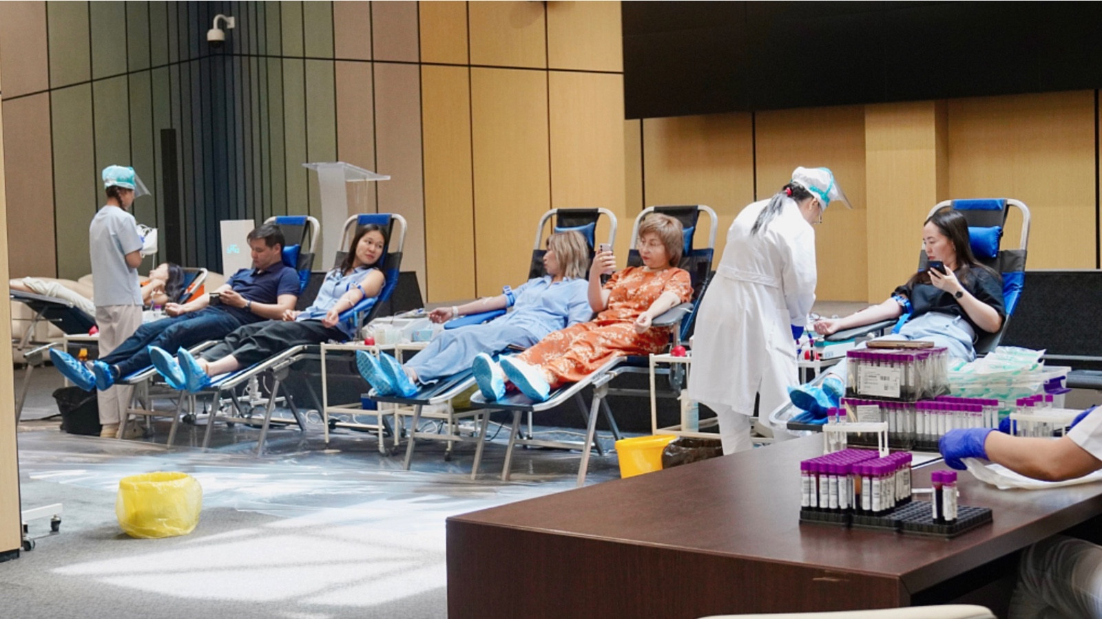 在“国家管理控股公司‘拜捷列克’”股份公司举行了一年一度的慈善活动——“献血日”。本次活动共有87人参加,其中72人成功献血。仅一天时间便采集了超过28升的血液。