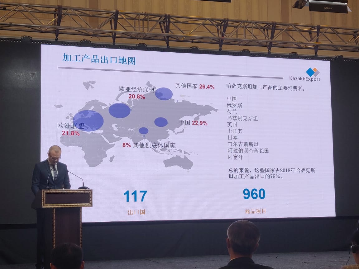 "哈萨克出口 "股份公司外国代表谢尔盖-萨尔马诺夫参加了研讨会,讲述了2018年哈萨克斯坦农产品对华出口的成果,2019年的新前景,已经批准和正在批准的关于中国哈萨克产品出口植物检疫要求的协议。